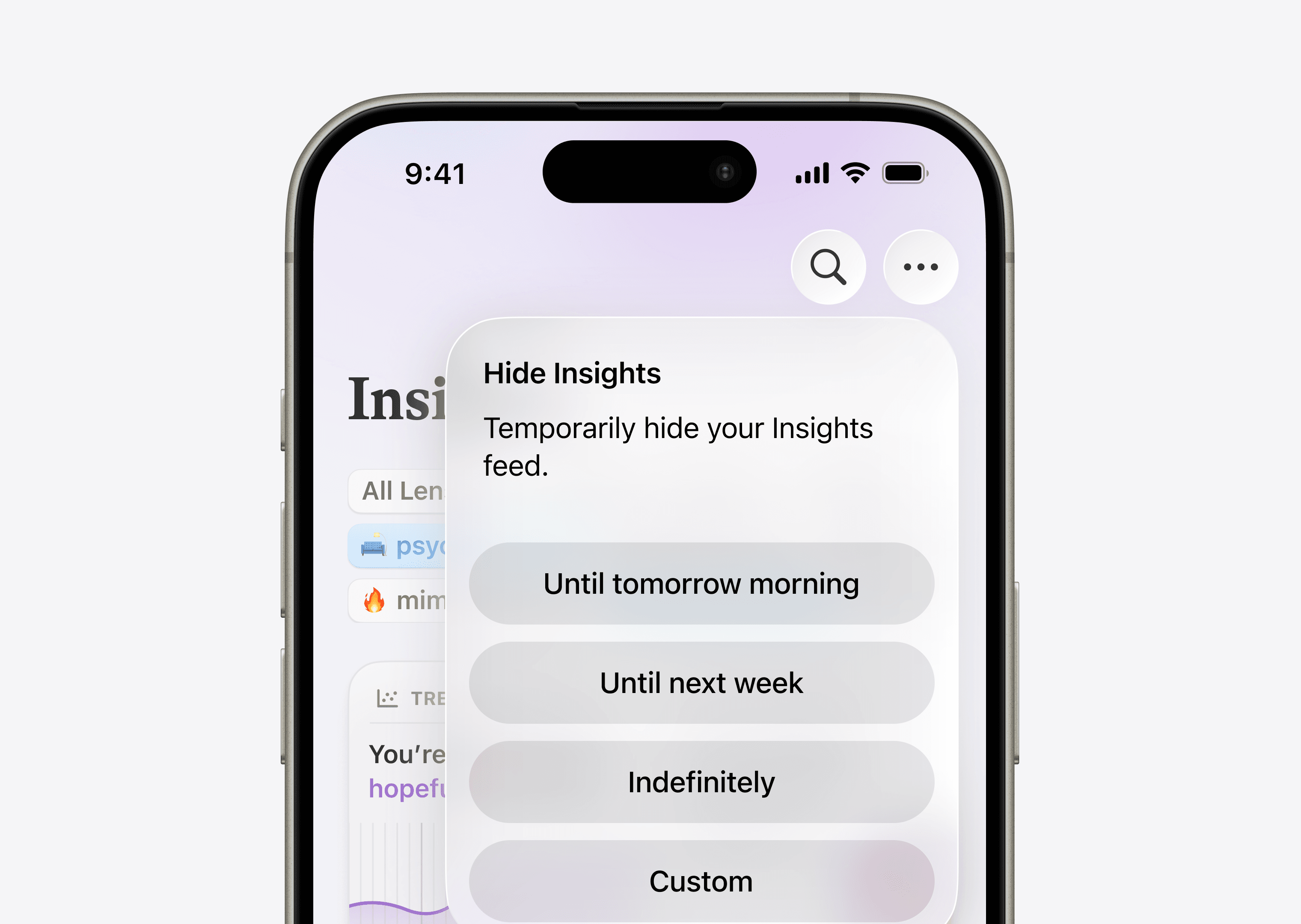 I added a hide insights feature to help users manage anxiety or cognitive overload around negative trends.
