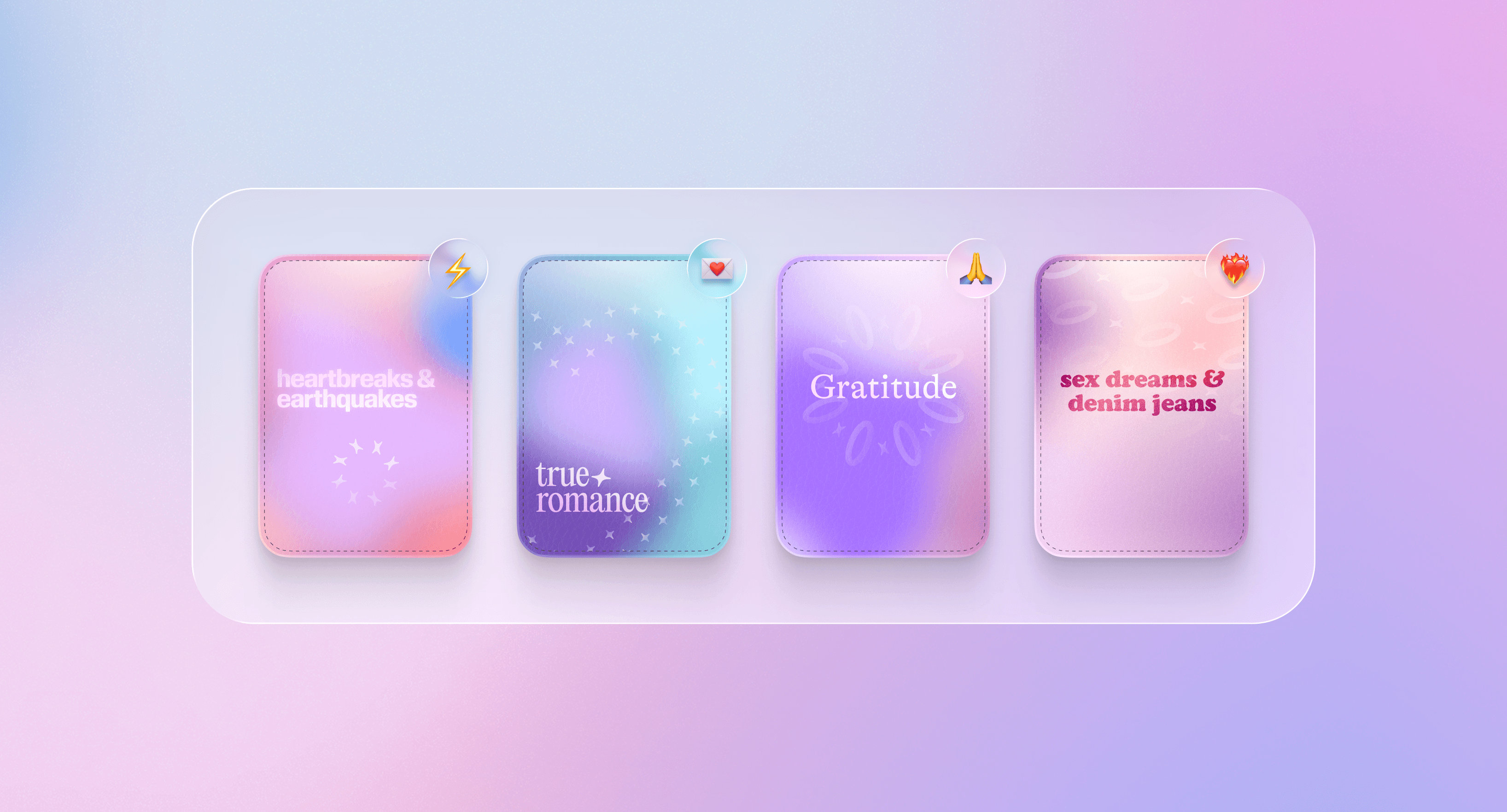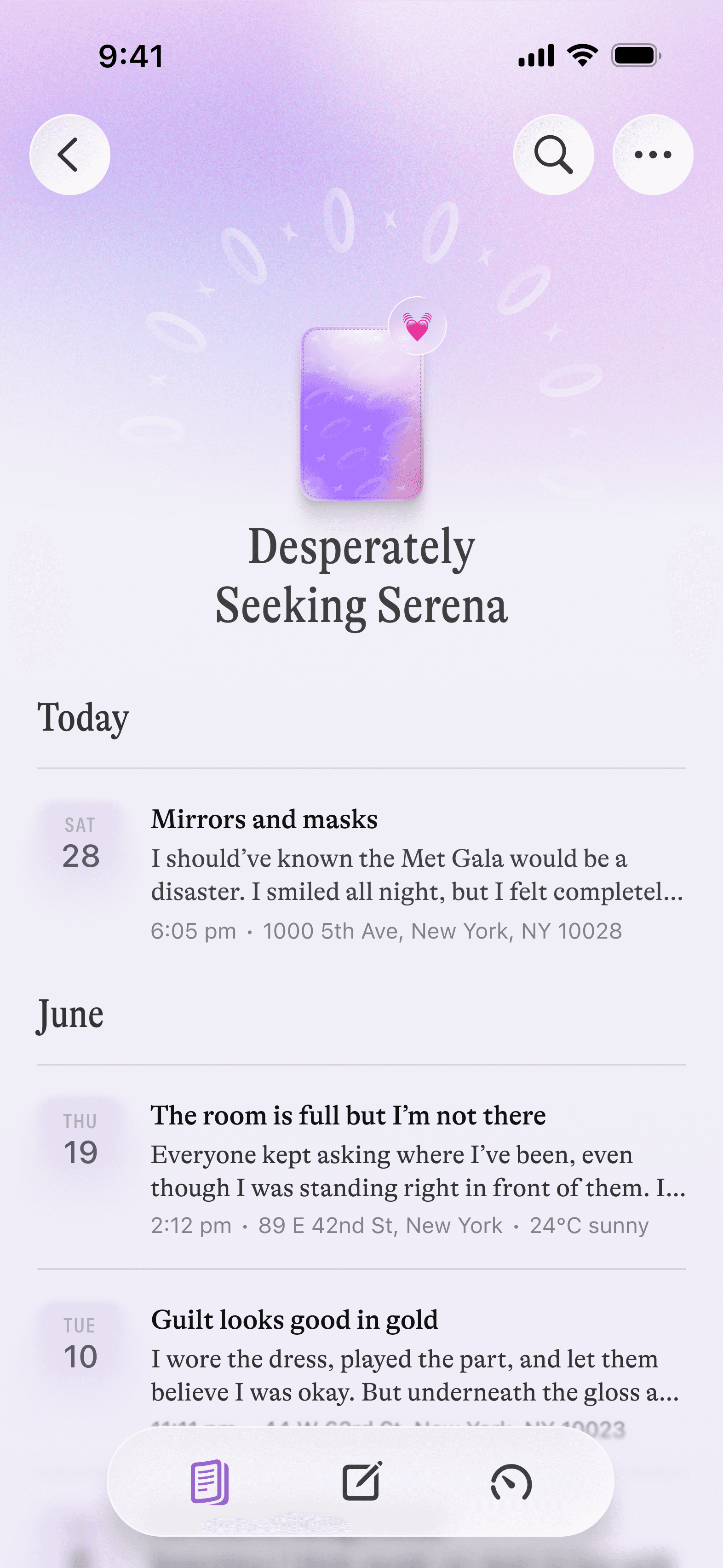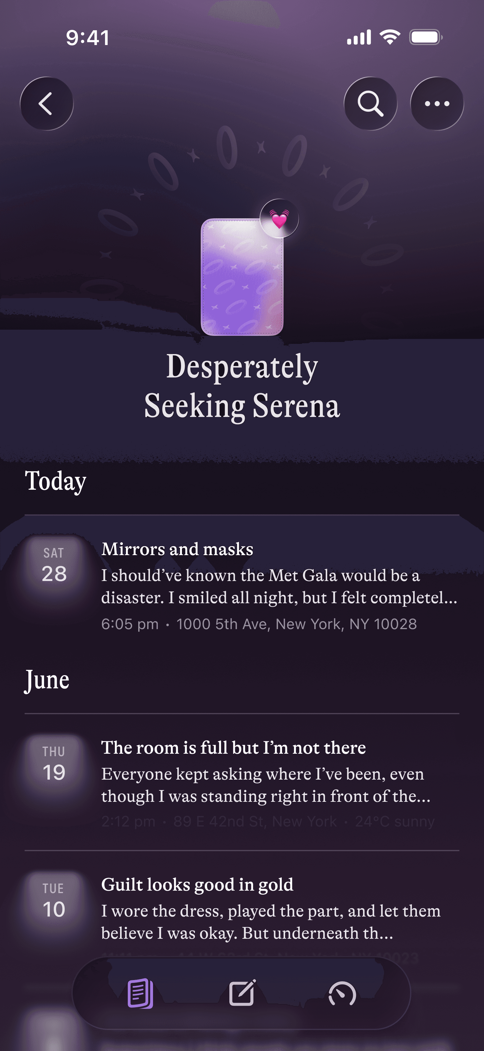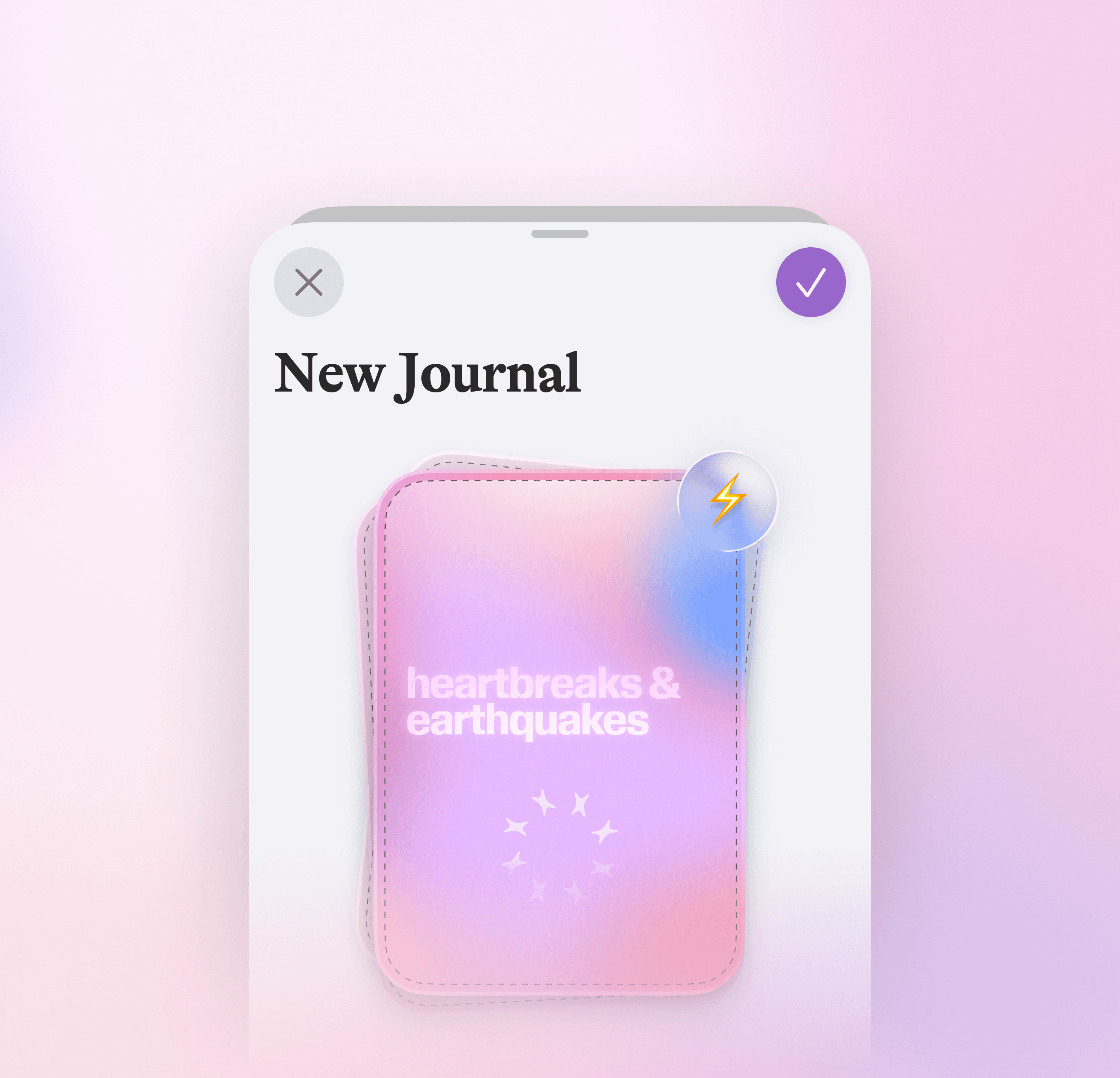 User personalisation is at the core of Moodring's design system – customisable journal covers are one such example. I employed a vibrant take on neumorphism to hint at object physicality and enable some of the personal embellishment often lost in translation between traditional and digital journaling.