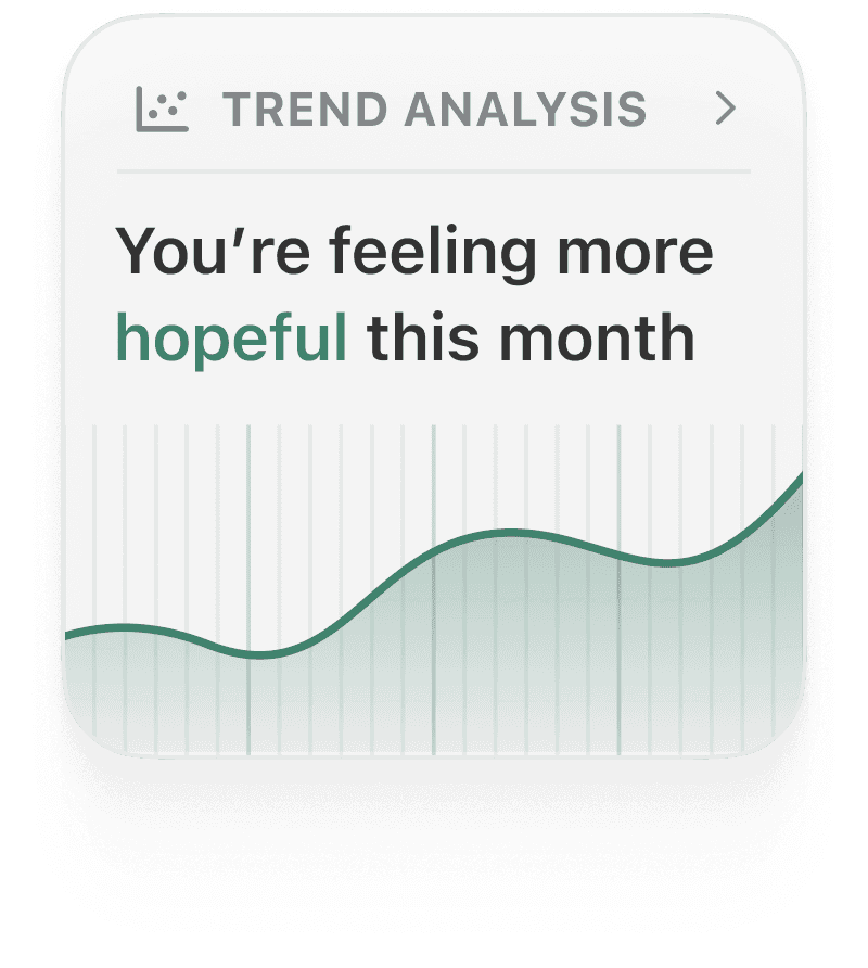 Core to Moodring’s interface is the Insights feed, a dynamic, dashboard-style interface where users can explore bigger picture trends over time and reflect retrospectively.