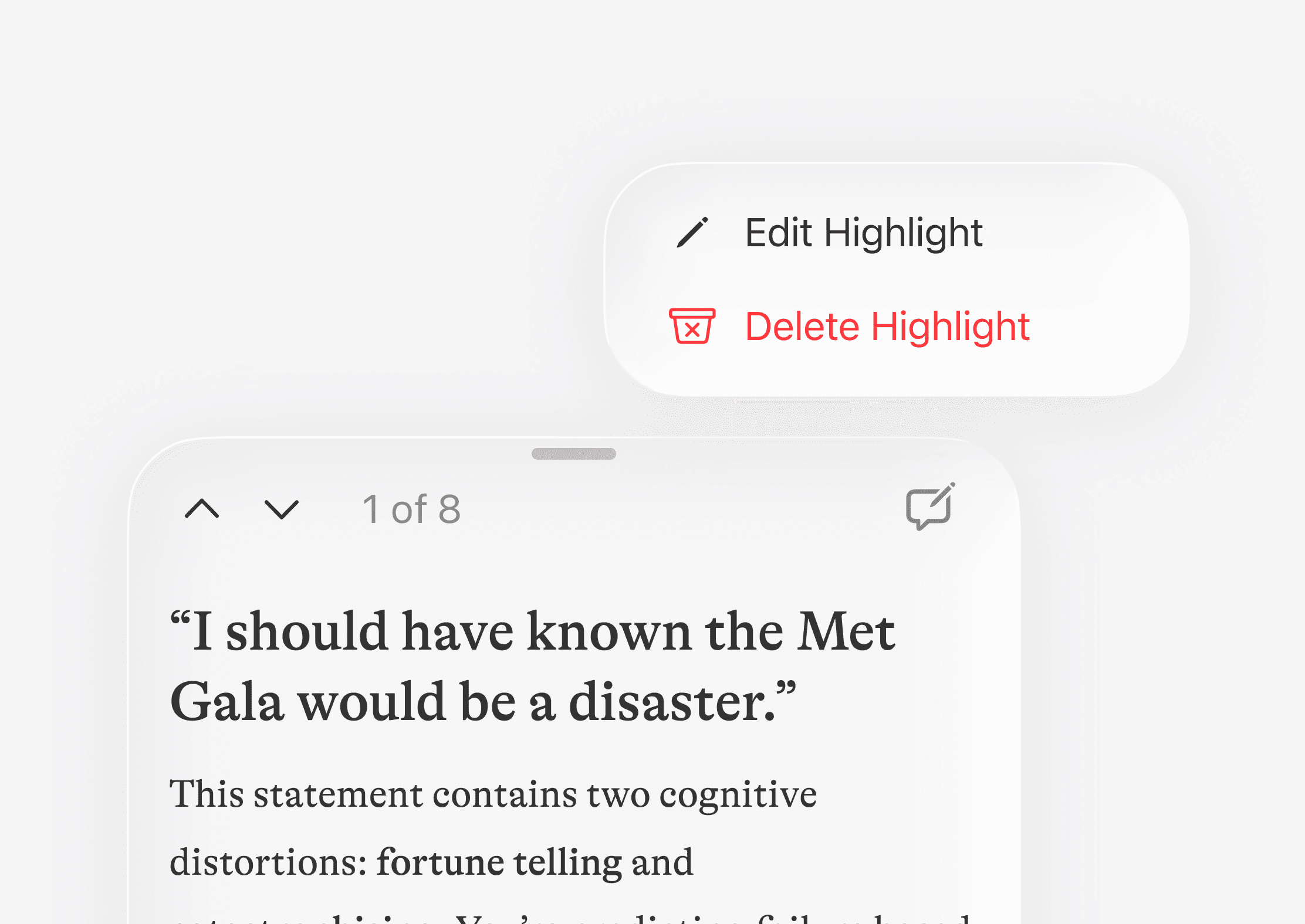 Users wanted more control over AI-based content, so I introduced options to edit or delete proposed highlights.