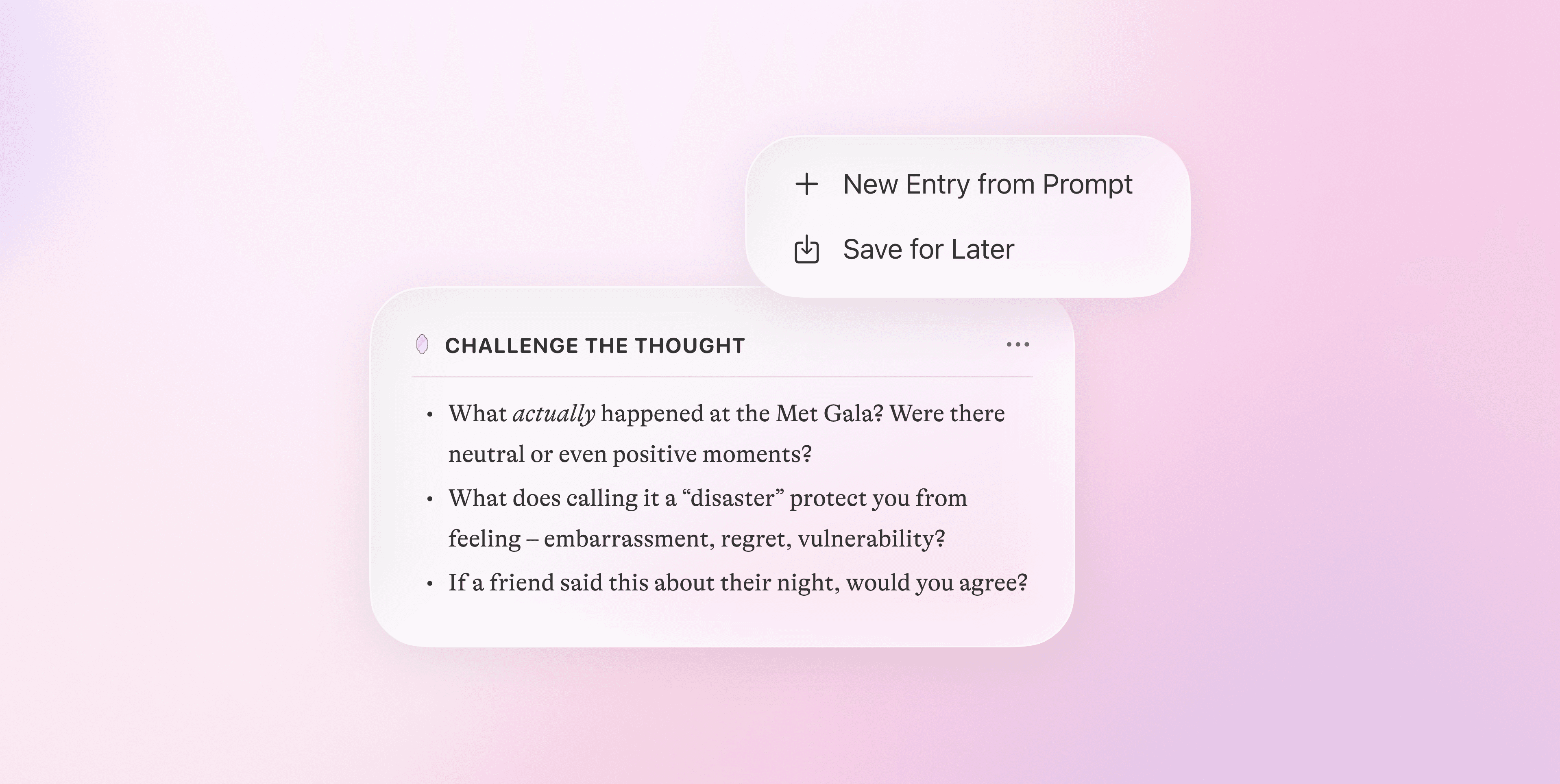 As these tools become an inevitability (reaching for ChatGPT is a far more accessible and immediate solution than navigating the mental healthcare system, for example), there is now more than ever a pressing need for thoughtful digital tools that facilitate meaningful self-reflection. Moodring is a case study about how we might leverage artificial intelligence to enhance mental health in ways that help people think more – more deeply, more constructively, more intentionally – not less.