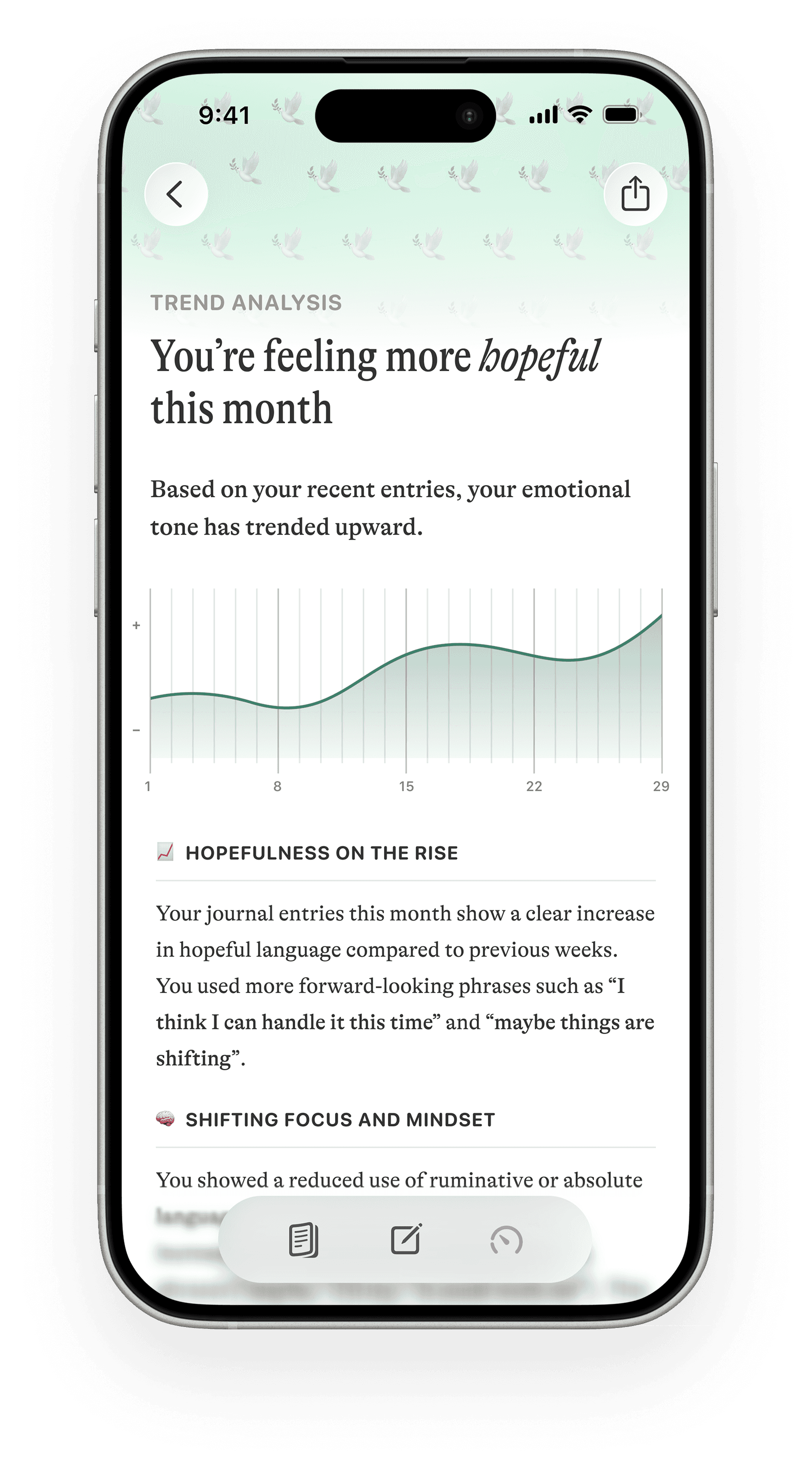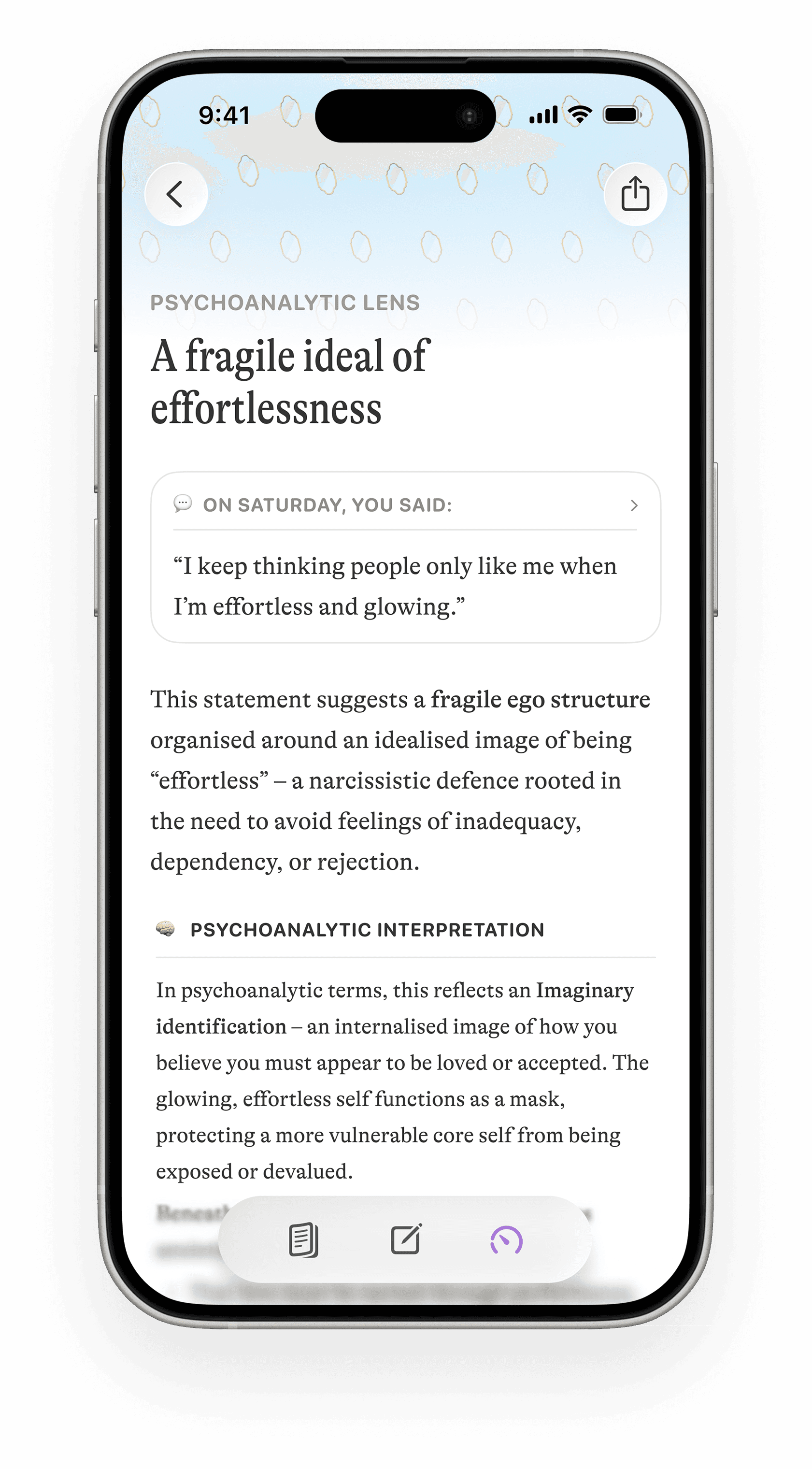 Users can enable highlights mode to reveal personalised annotations within their entries for immediate, contextual reflection and access to targeted prompts in real time.