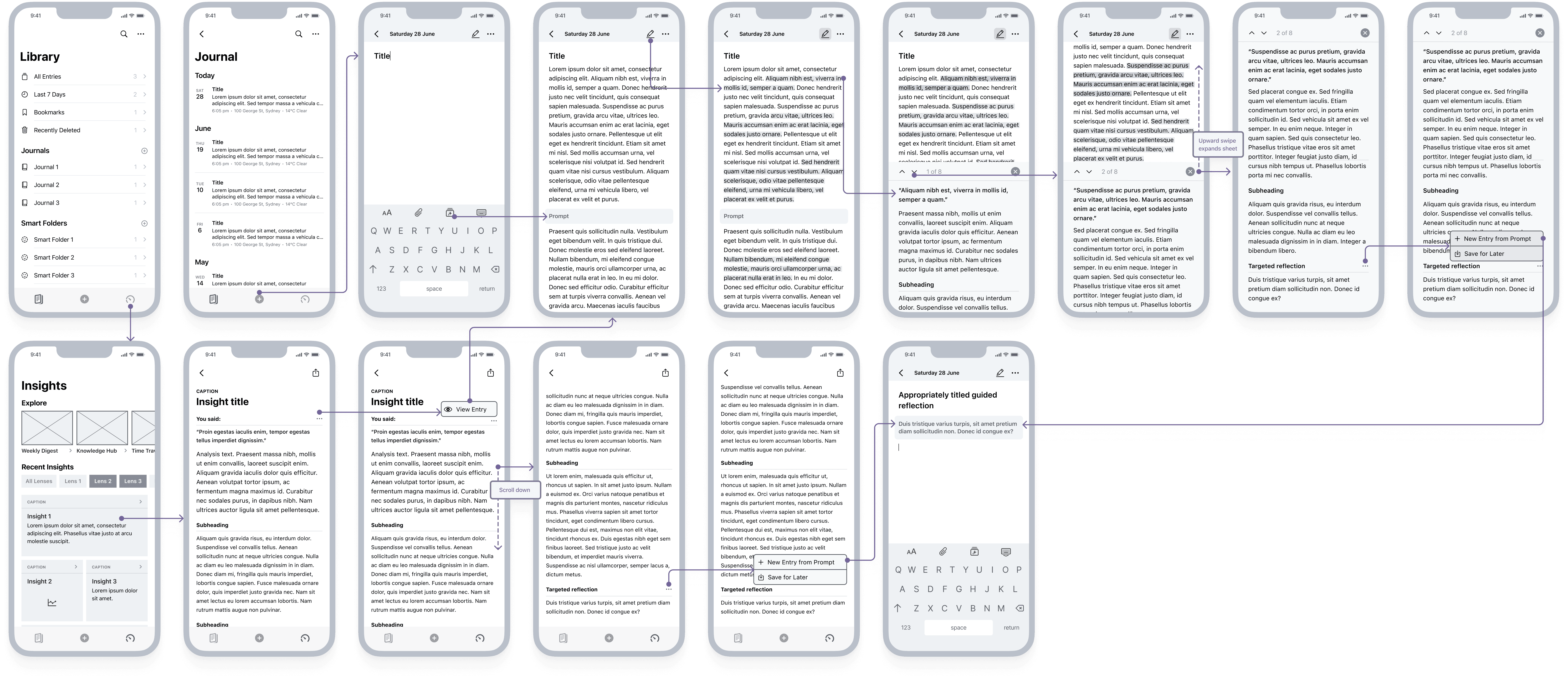 Mid-fidelity wireframes and flows